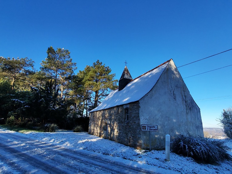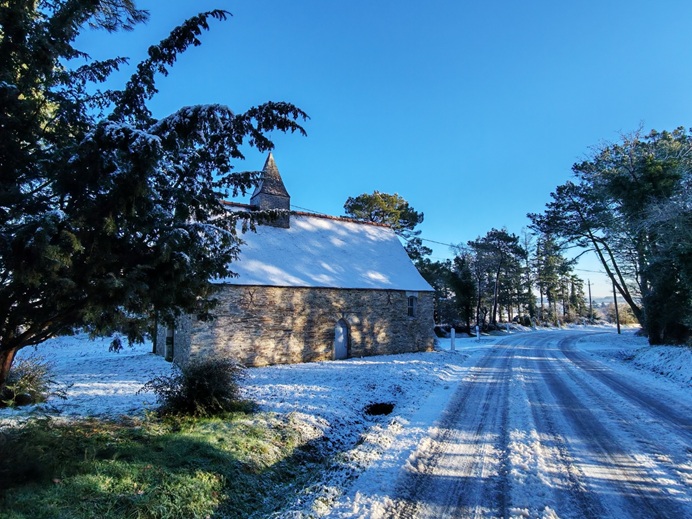 On n’y croyait plus… Et pourtant, la neige a fait son retour en Bretagne ce 6 janvier 2026. Quel plaisir de découvrir au petit matin, la campagne jacutaise enveloppée sous ce grand manteau blanc. La chapelle trône fièrement au bord de cette départementale devenue soudainement silencieuse.