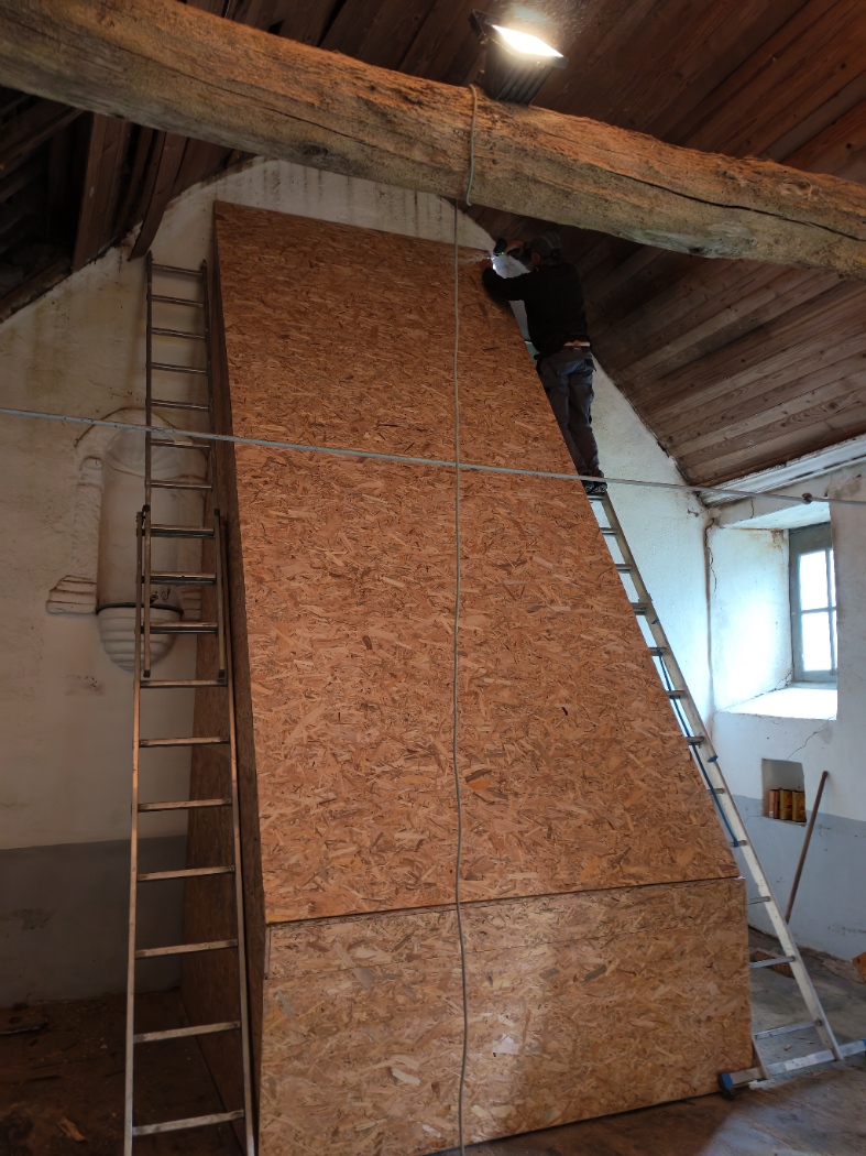 Le retable de la chapelle Saint-Barnabé date du XVIIe siècle. Il est inscrit Monument historique au titre des objets depuis 2000. Un tableau y est inséré, réalisé au XIXe siècle, représentant la Vierge de l’Immaculée conception, copie d’une œuvre du peintre espagnol Murillo. Avant d’entreprendre des travaux intérieurs, il convenait donc de le protéger pour éviter toute dégradation. Les membres de l’association Regain chapelle Saint-Barnabé ont construit un coffre en bois, le 11 décembre 2025. Le bâti a été réalisé en chevrons de pin prenant appui sur les murs de la chapelle. Il a été ensuite recouvert de plaques d’OSB. Le bois a été acheté par la commune. Des trous ont été percés afin d’assurer une bonne ventilation. Le retable est désormais protégé contre les chutes éventuelles de bois et d’ardoises.